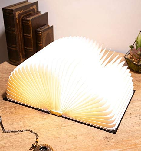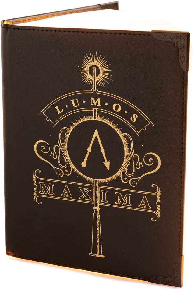 Bellissima lampada d'atmosfera con disegno ispirato all'incantesimo Lumos Maxima.Si accende quando apri il libro.
