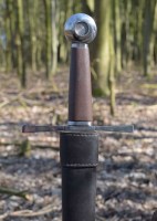 Spada pratica medievale a una mano. E' la replica di una spada altomedievale con pomolo a disco realizzato a mano. E' una spada equilibrata. La lama è in acciaio armonico EN45 e temprato nell'olio il che gli conferisce una durezza 48-50 HRC. La guardia è in acciaio. I bordi della mano sono smussati e la punta è arrotondata per la sicurezza.
