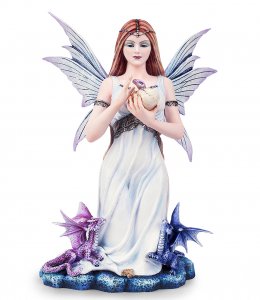 Fata Larisa seduta con i suoi draghi, realizzata in resina e dipinta a mano, prodotto dalla Les Alpes per la collezione Fairy Land. Misura circa 35 cm.