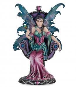 Bellissima fata realizzata in resina e dipinta a mano della collezione Fairy Land di Les Alpes. Fa parte di una serie di 4 fate rappresentanti le 4 stagioni, lei è la reggina della Primavera. Misura circa 26,5 cm.