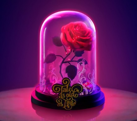 Bellissima lampada con luce d'atmosfera realizzata con la Rosa Incantata del film Disney La Bella e la Bestia