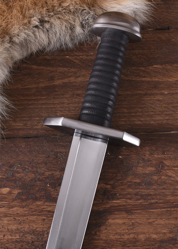 Spada Vichinga del 9° e 10° secolo, da combattimento, in acciaio. Lama da combattimento con punta arrotondata di tipo SK-C. Lunghezza complessiva di circa 81cm, lama lunga circa 65cm. Non affilata.