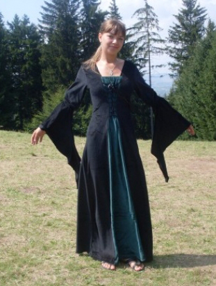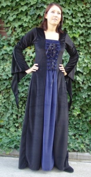 Abito medievale con allacciatura frontale a lacci incrociati.