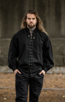Camicia da uomo con allacciatura anteriore a lacci incrociati. Realizzata in cotone e lino. Disponibile in varie taglie, nei colori: nero, bianco, avorio.